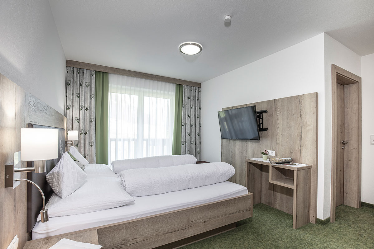 Unser kleines Appartement verfügt über ein Doppelzimmer mit Schlafsofa, ein Bad mit Dusche/WC, eine Wohnküche mit Essecke sowie einen Balkon mit Blick auf die Ötztaler Alpen.